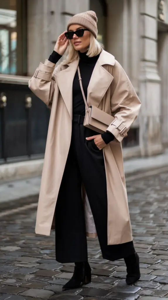 This style is ideal for casual strolls, coffee dates, or weekend brunches. It keeps you looking polished while adapting to unpredictable weather, ensuring you stay effortlessly stylish as the seasons shift.