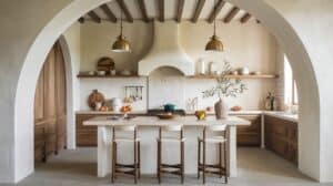 Incorporate natural materials like driftwood shelves, rope accents, and woven baskets. Add nautical decor such as anchors or seashells for an authentic coastal touch.