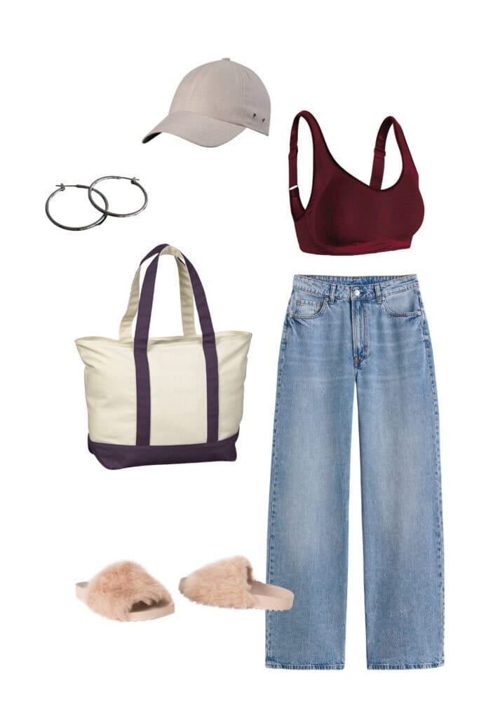 There’s something very 90s-throwback-meets-studio-energy about this combo. A cropped ribbed tank (white, charcoal, or dusty pastel) gives you a fitted top half while relaxed joggers balance out the bottom. Tie a plaid flannel around your waist or wear it open over your tank if the weather’s a maybe.