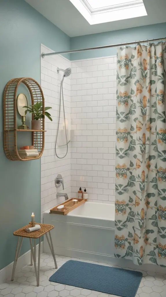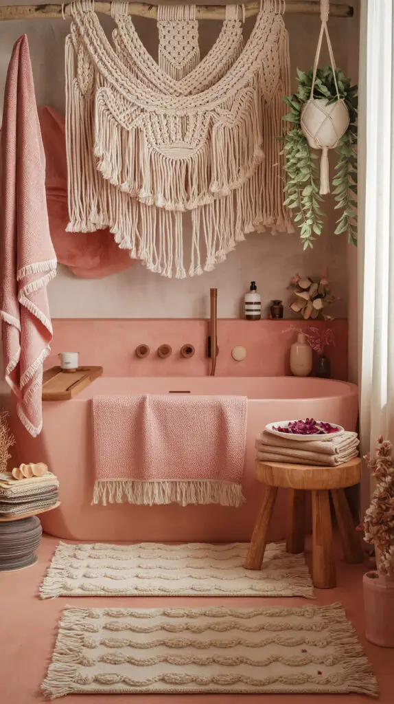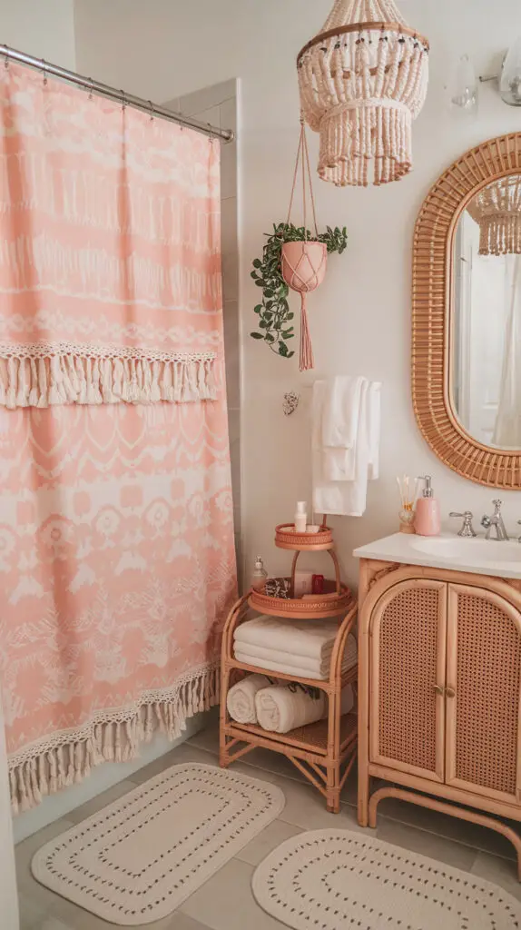 10. Go Full Boho Bathroom with Soft Layers and Pastel Pops