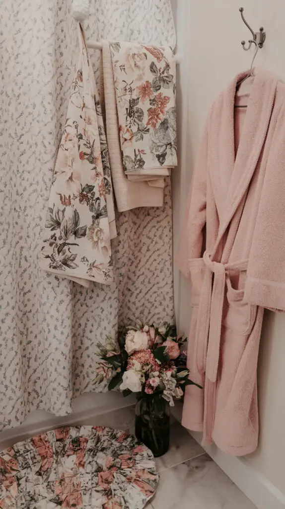 You know how they say it’s the little things? They were 100% talking about floral hand towels and ditsy-print shower curtains. I once found a rose-printed curtain at a thrift shop for $3 and it transformed my whole bathroom into a storybook scene. Cottagecore isn’t about buying everything new—it’s about layering textures and patterns that feel lived-in and lovely.