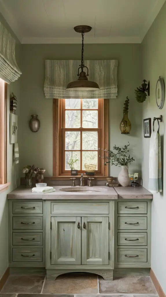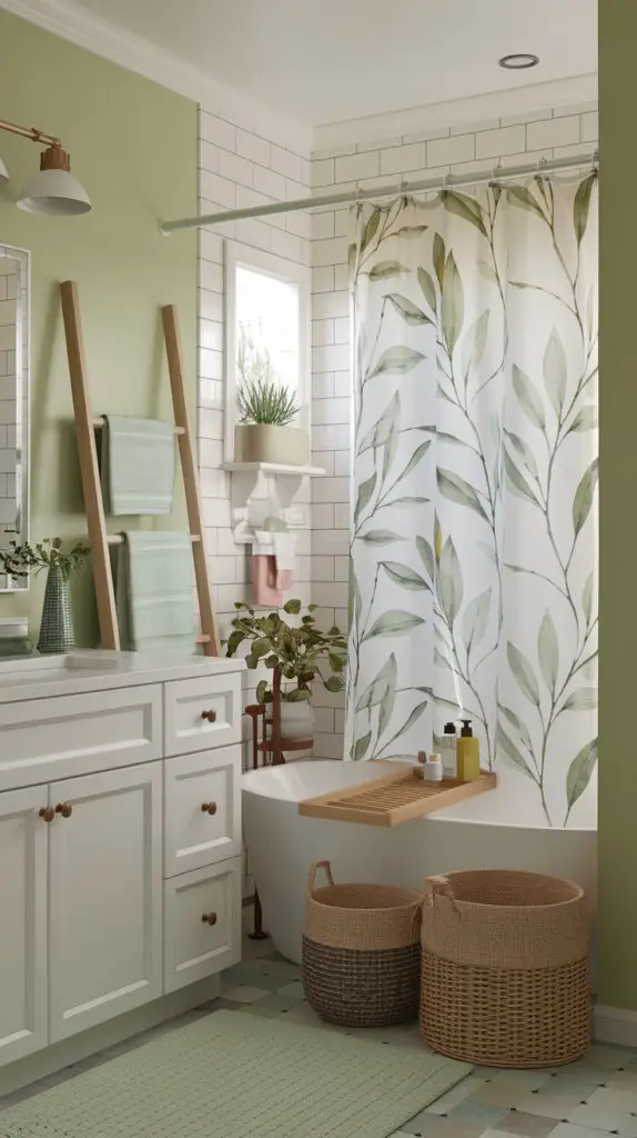 7. Style an Earthy Bathroom with Pastel Green Touches