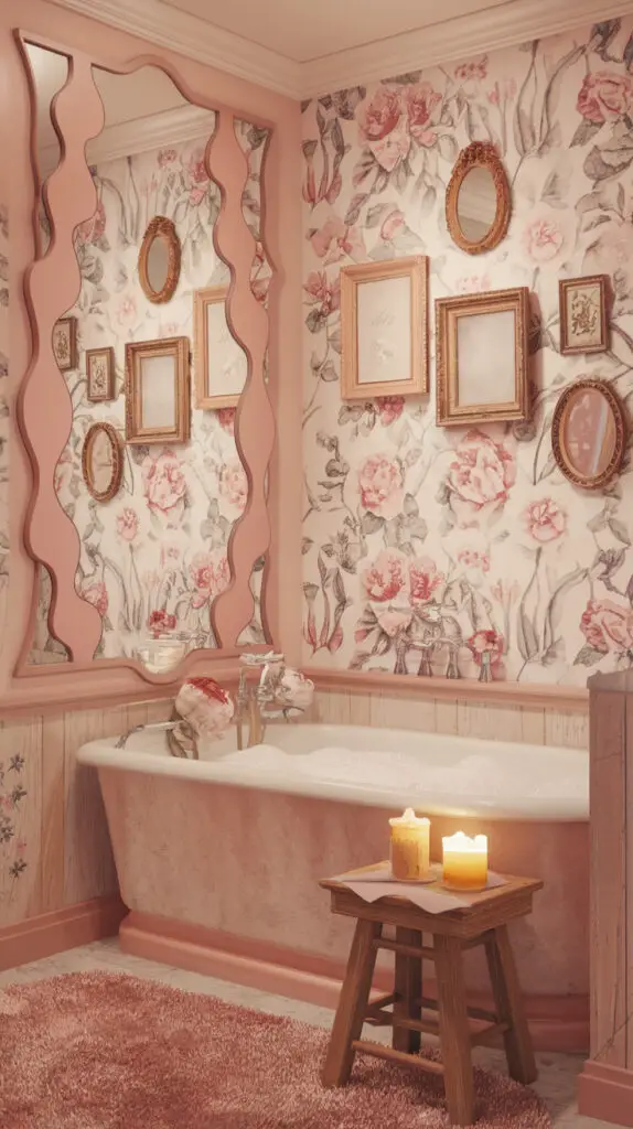 Creating a fairytale bathroom is all about softness and storytelling. Pastel florals, iridescent accessories, maybe even a vintage-style wall sconce with a warm glow. The goal is for the space to feel like a gentle secret—a place you retreat to when you need to reconnect with your softer self.