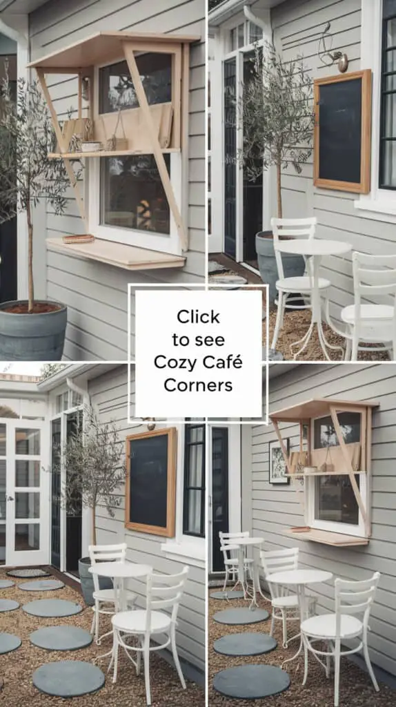 Outside? Keep it welcoming with gravel or brick underfoot, a potted olive tree, and maybe even a café sign (faux chalkboard or real wood — both adorable). It’ll feel like the neighborhood secret café… even if you’re the only customer.