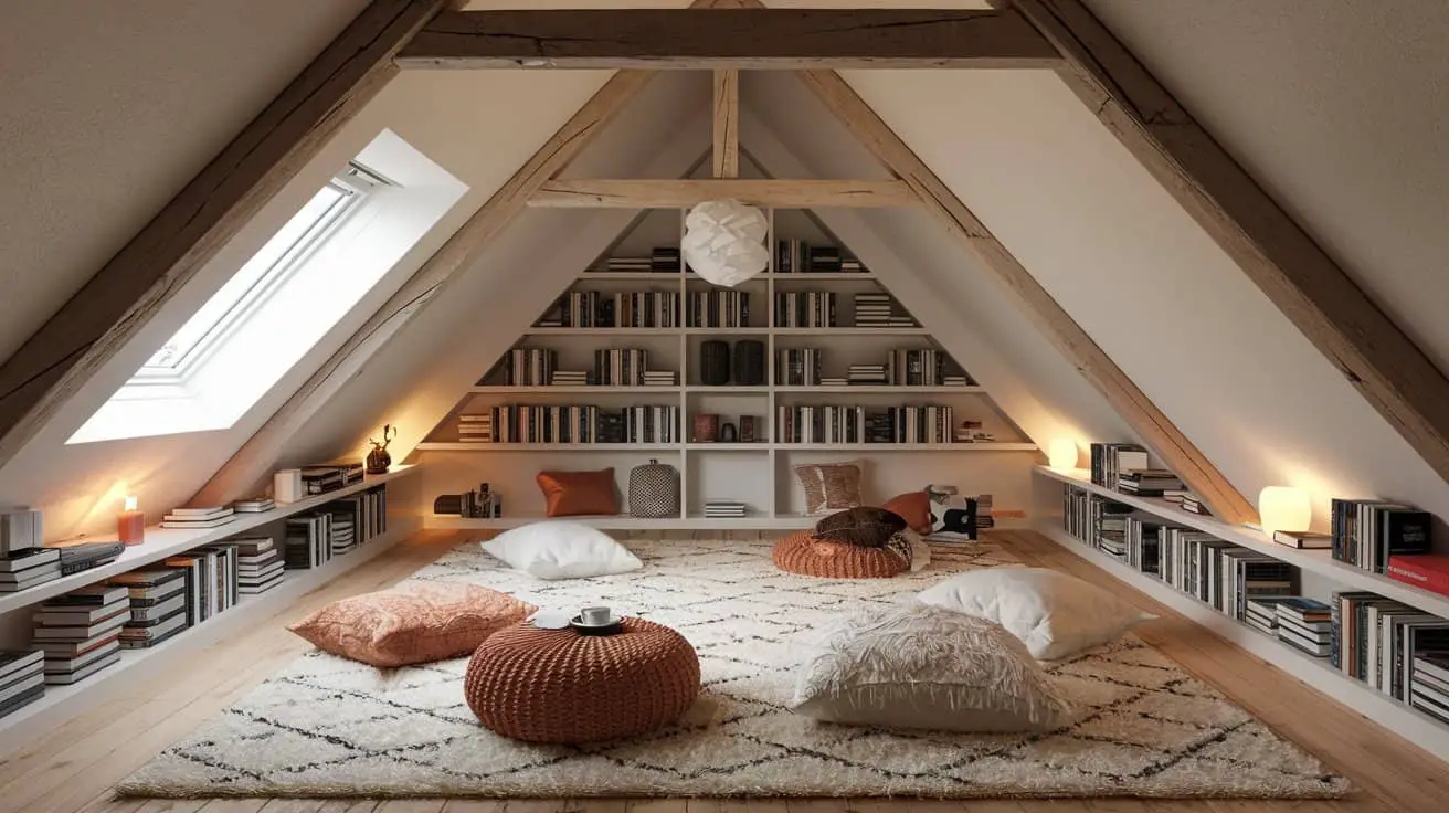 If the ceiling’s too low for full furniture, floor seating is your friend. Warm rugs, ambient lighting, and maybe even a cup of cocoa make it feel like you’re in a storybook. This kind of space doesn’t need to be perfect — in fact, a bit of worn-in charm makes it even better. Just make sure you’ve got a good lamp or two, and you’re set.