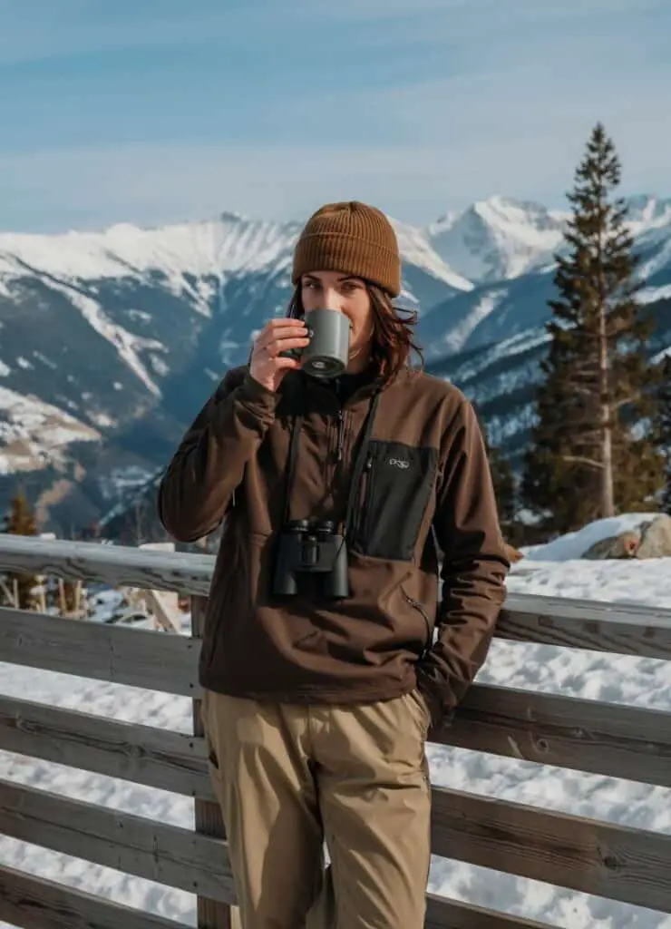 You don’t need a full expedition outfit for short trips, just something warm enough for easy trails. A fleece half-zip under a lightweight insulated jacket works great. Pair it with thermal leggings under hiking pants so you can sit on cold rocks without freezing.