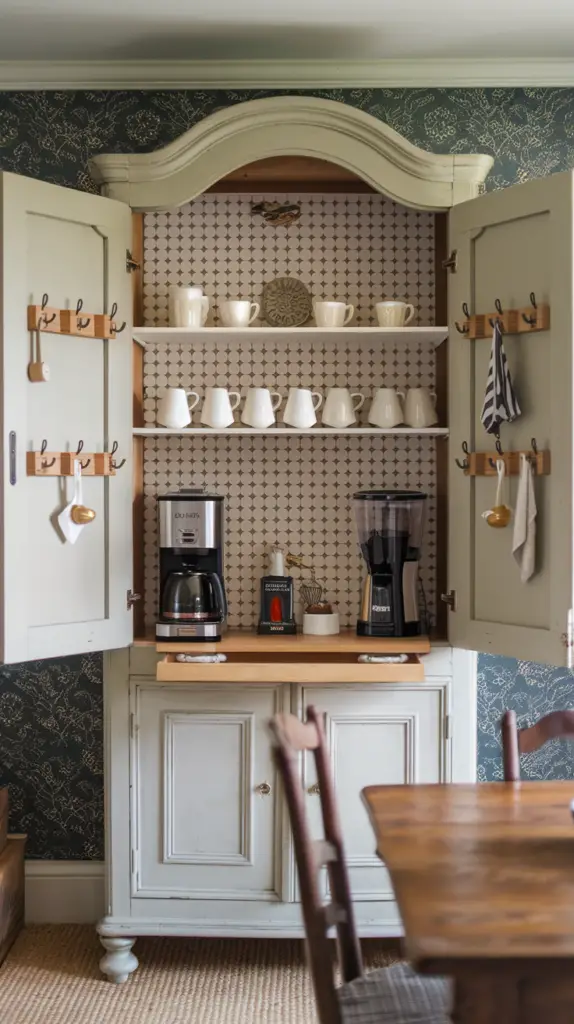 11. Built-In Coffee Bar Cabinet for a Sleek Look