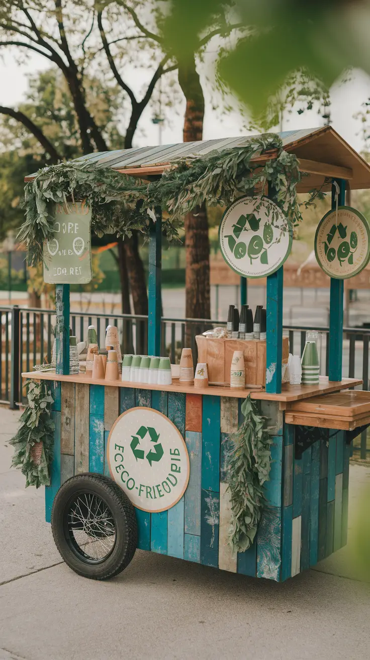 Build an eco-friendly smoothie cart using sustainable materials like recycled wood and compostable cups. Decorate with greenery and eco-themed signs to emphasize your commitment to the environment. It’s a great option for festivals or outdoor events.