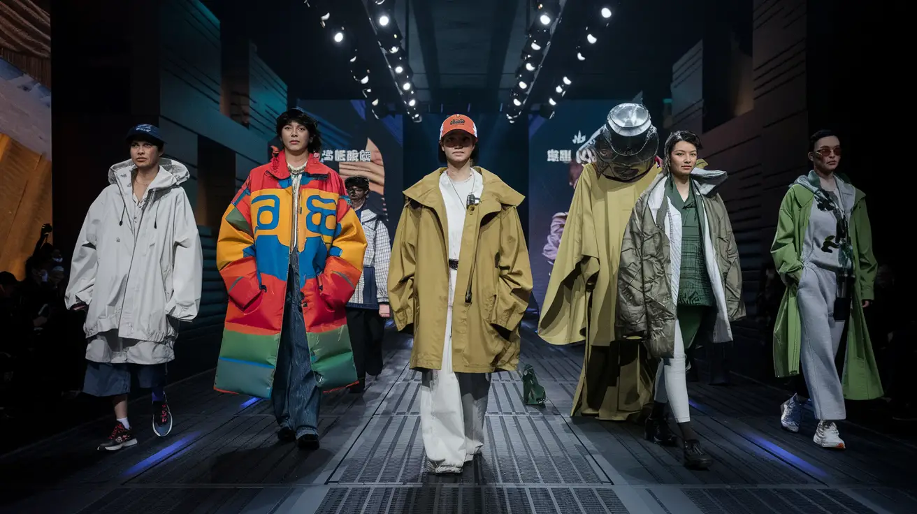 Key pieces include holographic jackets, reflective sunglasses, neon qipao dresses, and futuristic sneakers Layering plays a huge role here think of oversized cyberpunk trench coats over traditional hanfu silhouettes for a dramatic effect