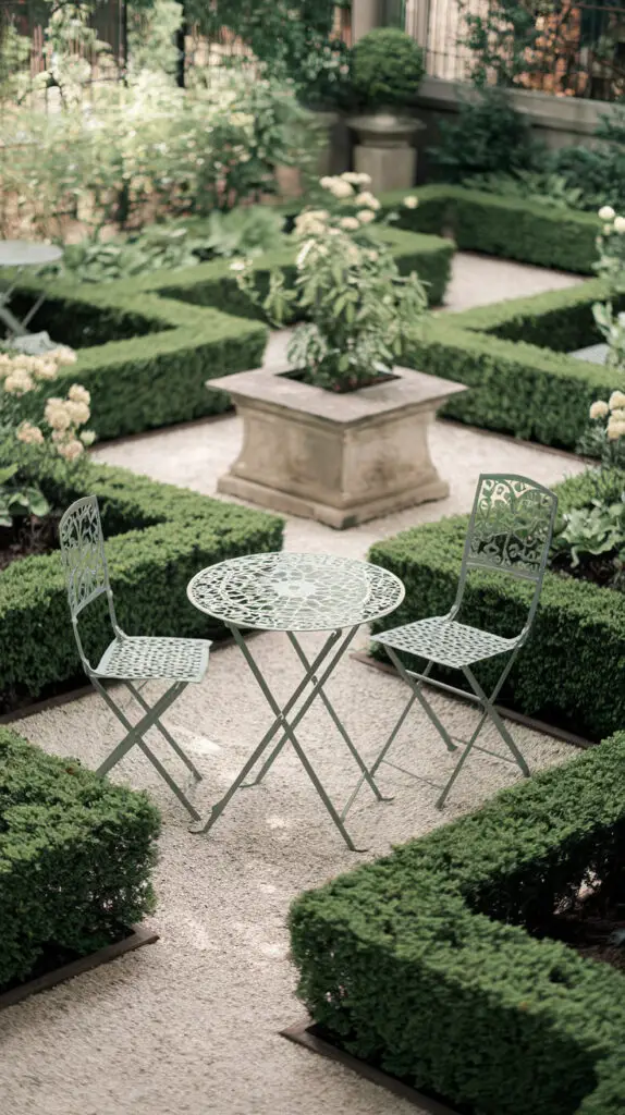 If you lean more French than Italian, try mixing fine gravel paths with structured boxwood plants. Add a little metal garden table or birdcage-style lantern and you’ve got that soft, romantic French garden feel—without needing an estate.