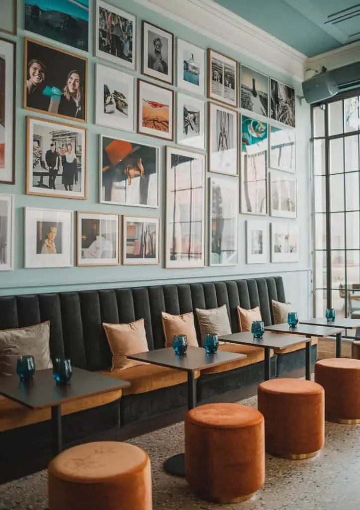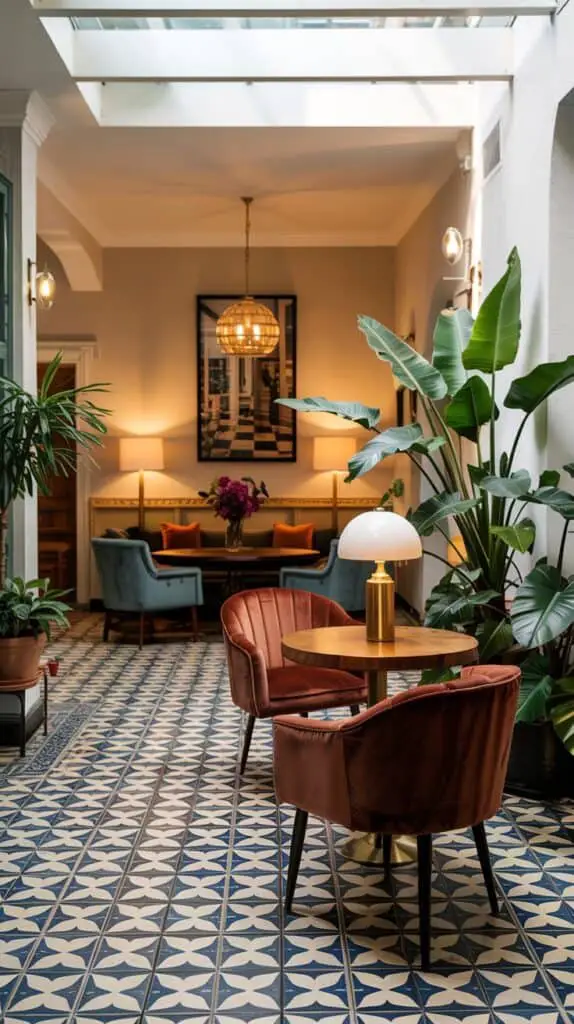 If the bedroom is where you rest, the lobby is where you arrive. Long gone are the days when a hotel lobby was just a sofa and a reception desk. Modern boutique hotels treat the lobby like the heart of the experience—equal parts living room, café, and art gallery. Step into one and you might find a Portuguese restaurant interior vibe spilling into the seating area, with tiled flooring and terracotta accents setting the tone.