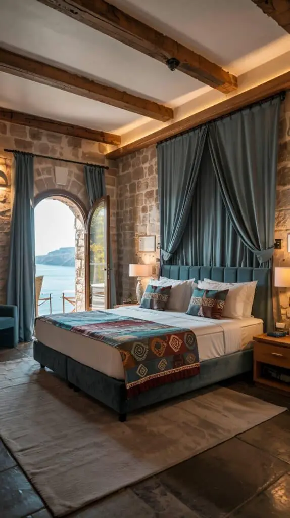Small hotel rooms teach us about maximizing storage without killing style—beds with drawers underneath, floating desks, hidden wardrobes. Hotel room interior design shows us that soft-close cabinetry and clean-lined furniture keep clutter at bay. Even layering textures—linen bedding, velvet cushions, a wool throw—translates easily into your own bedroom.