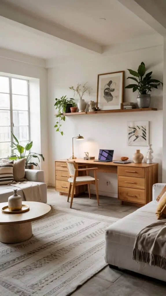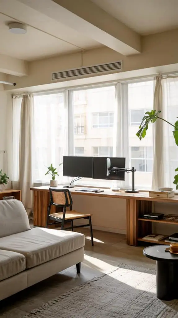 Whether it’s a central desk, a shared setup for two, or a compact corner with hidden storage, a little planning can make your living room work double duty — without it ever feeling like a corporate space.