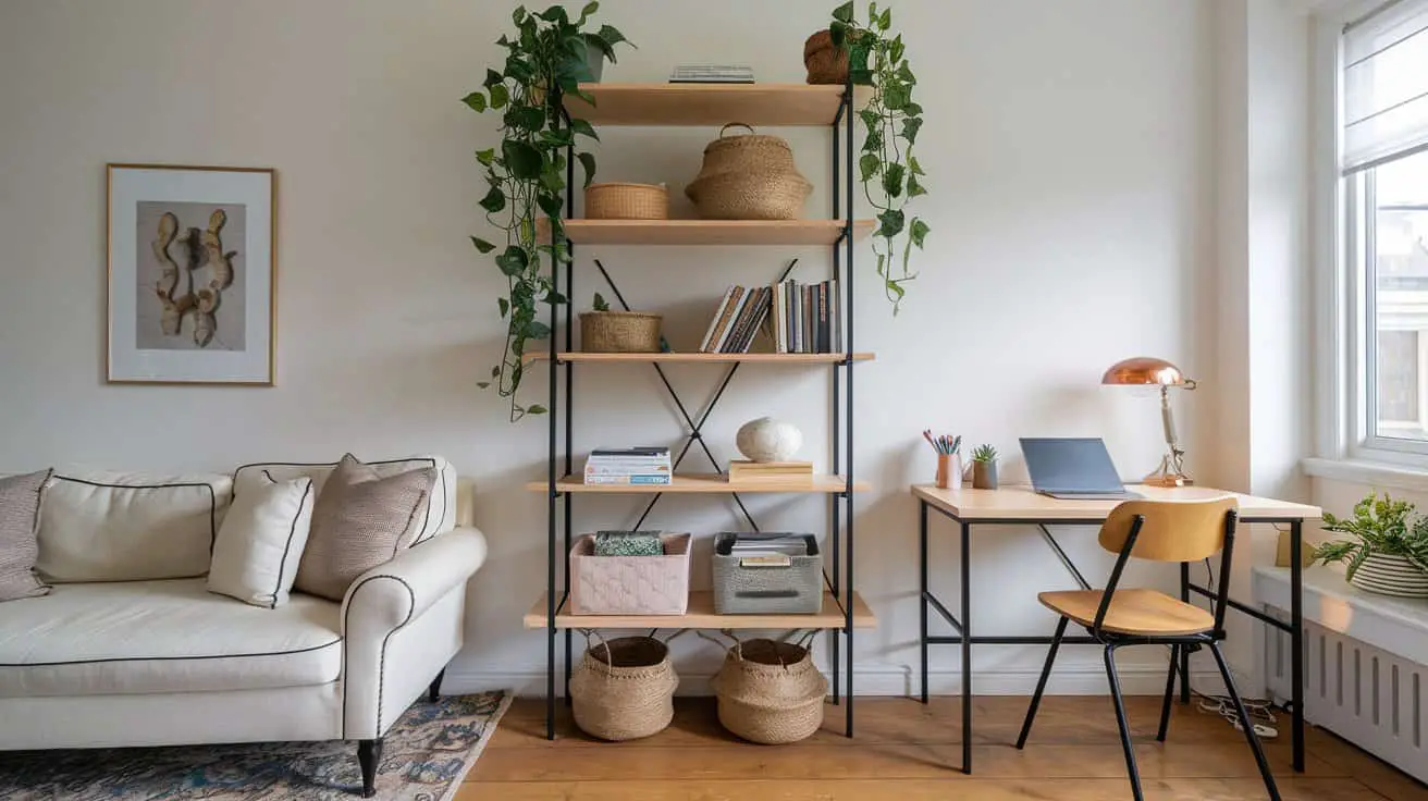 For small spaces, think about multifunctional pieces — storage ottomans, rolling carts, and matching organisers help keep everything tidy so the workspace blends in when it’s not in use.