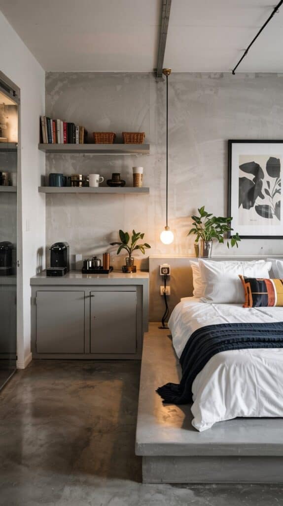 3. Industrial Bedroom with Coffee Corner Kitchen Vibes