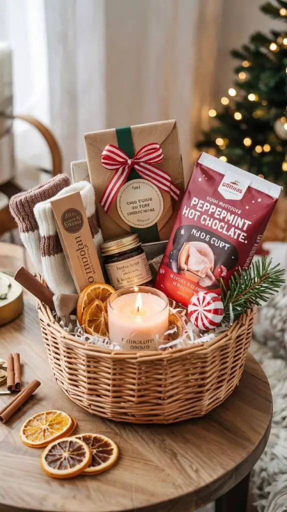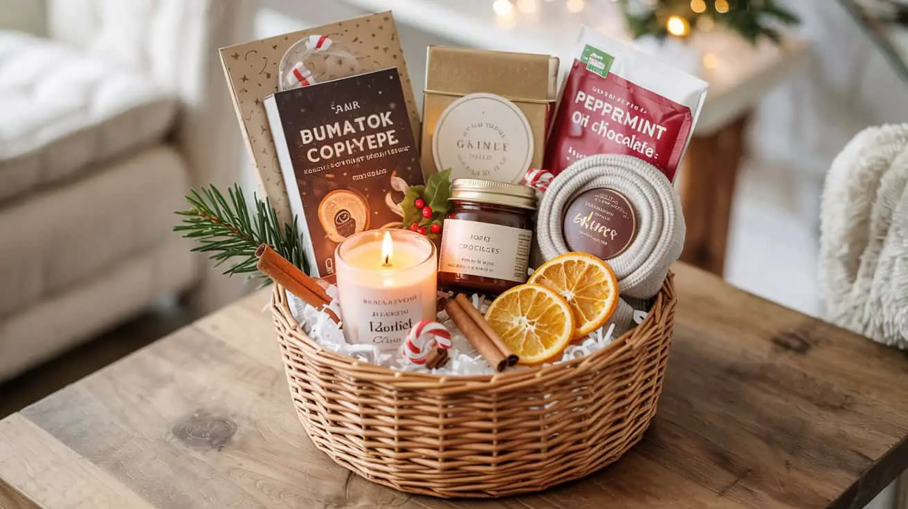 In this guide, I’m walking through realistic, affordable ideas that look festive without needing fancy wrapping or expensive fillers. Think mini treats, tiny bundles of comfort, seasonal textures, and small details that make the whole basket feel intentional. Even if you’re like me—wrapping gifts at 1 a.m. and wildly hoping the tape holds—you’ll find something here that works beautifully.