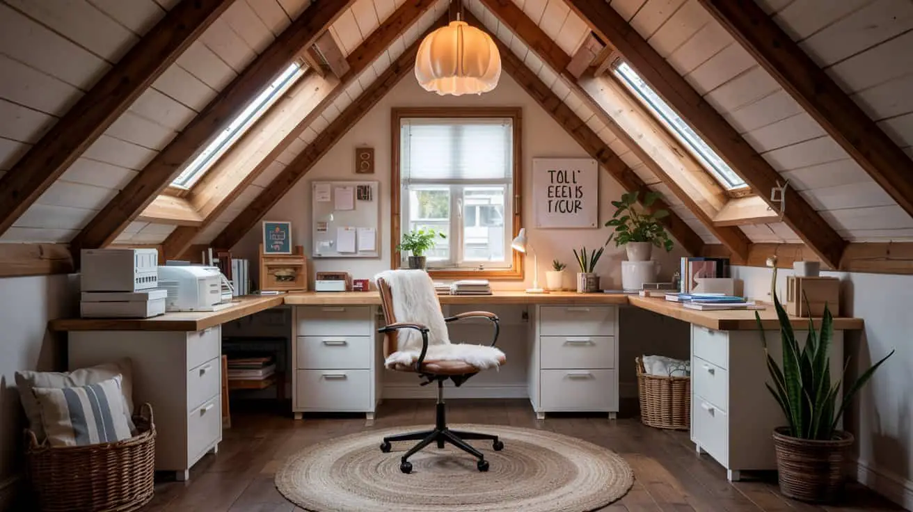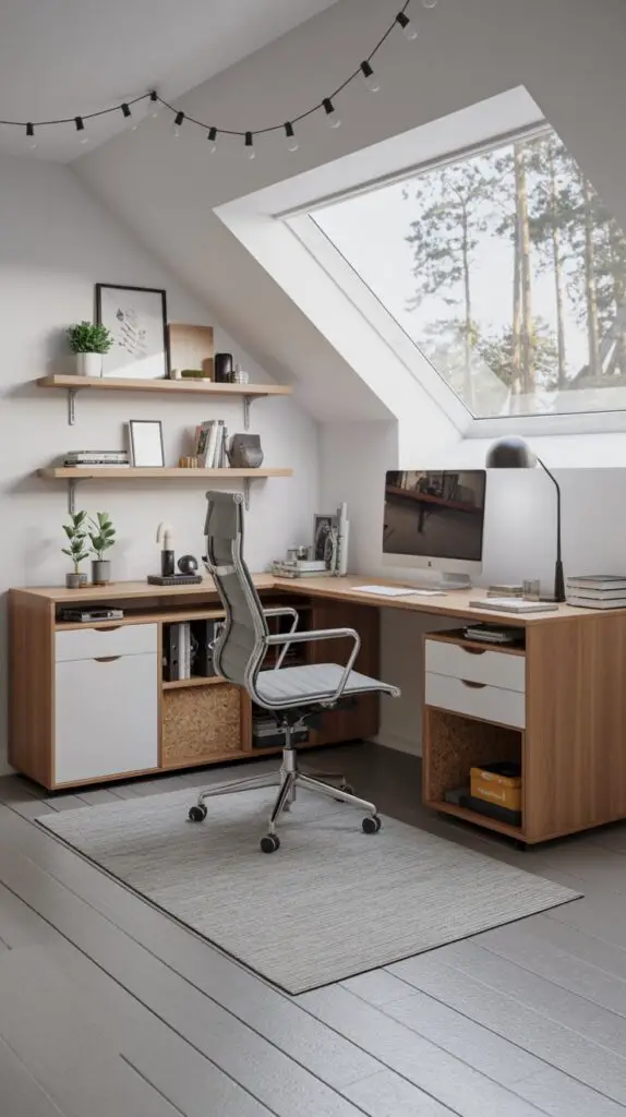 If your attic has any kind of window — dormer, skylight, or even a tiny square one — put your workspace as close to it as possible. Natural light helps your brain focus, keeps you awake during long afternoons, and makes even the smallest loft office feel bigger. A small loft window can actually feel cosy, almost like a tiny studio space.
