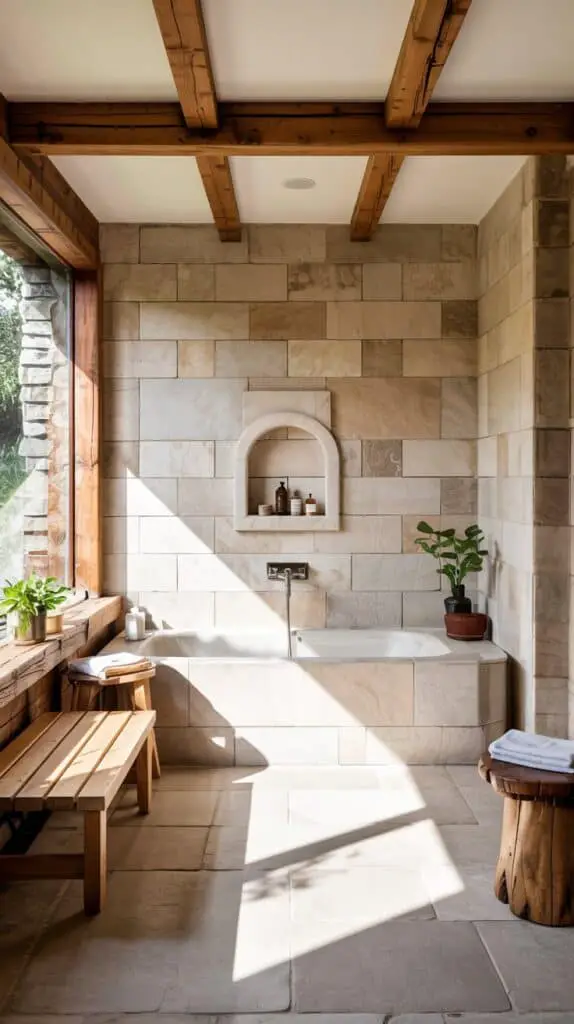With stone, wood, greenery, and soft lighting, the bathroom becomes more than a room. It becomes an indoor retreat. A sanctuary built for stillness, warmth, and the simple beauty of nature.