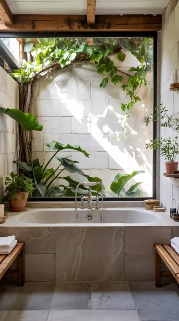 Bathing while surrounded by nature—even through glass—has been shown to reduce stress and slow the nervous system. This view becomes part of the retreat, creating a spa-like ambience without stepping outdoors.