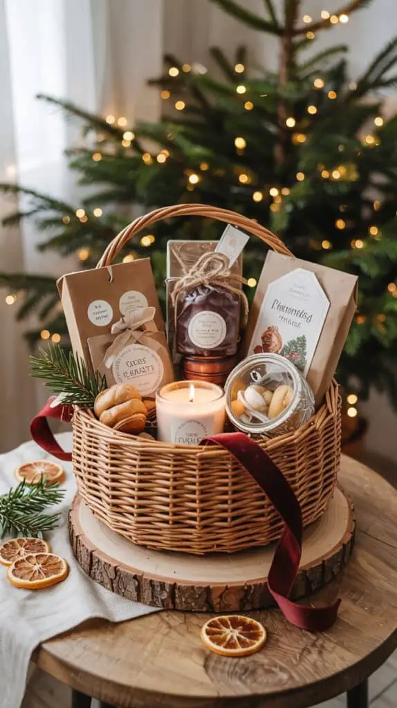 The most charming Christmas gift baskets don’t look mass-produced. Slight imperfections, mixed textures, and relaxed styling make them feel real and heartfelt.