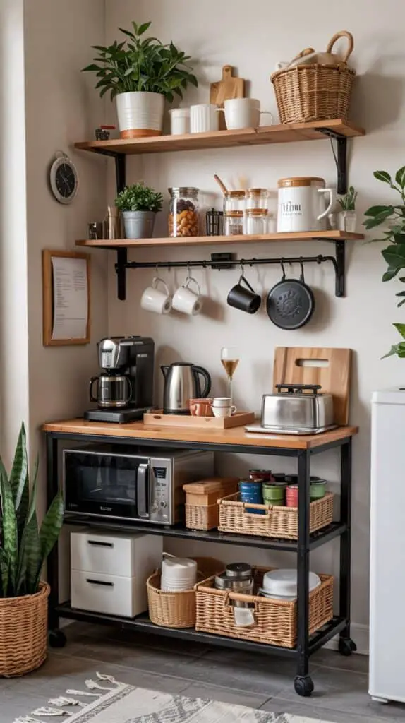 A rolling cart is one of the most apartment-friendly coffee bar solutions.