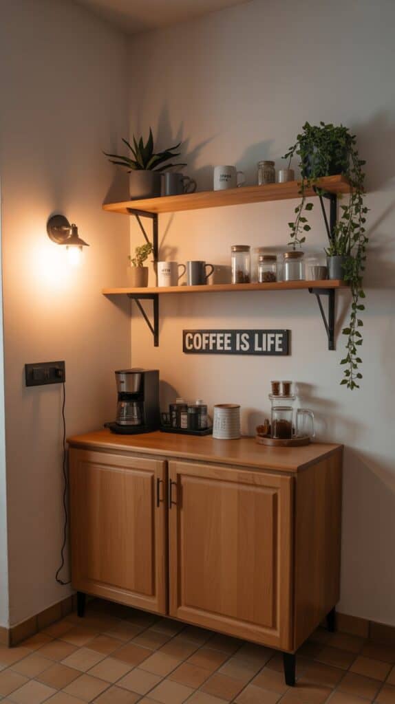 In small homes, less really is more. A coffee corner feels more realistic than a full setup.