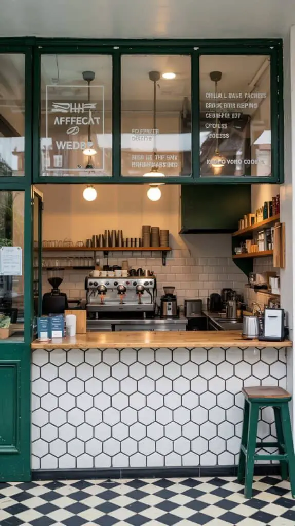 The counter finish can set the tone for your coffee shop interior—stone or quartz for a modern look, butcher block for warmth, or tiled fronts for a splash of personality. If your kitchen opens to customers, a well-finished counter becomes both a work zone and a part of your coffee shop decor ideas.