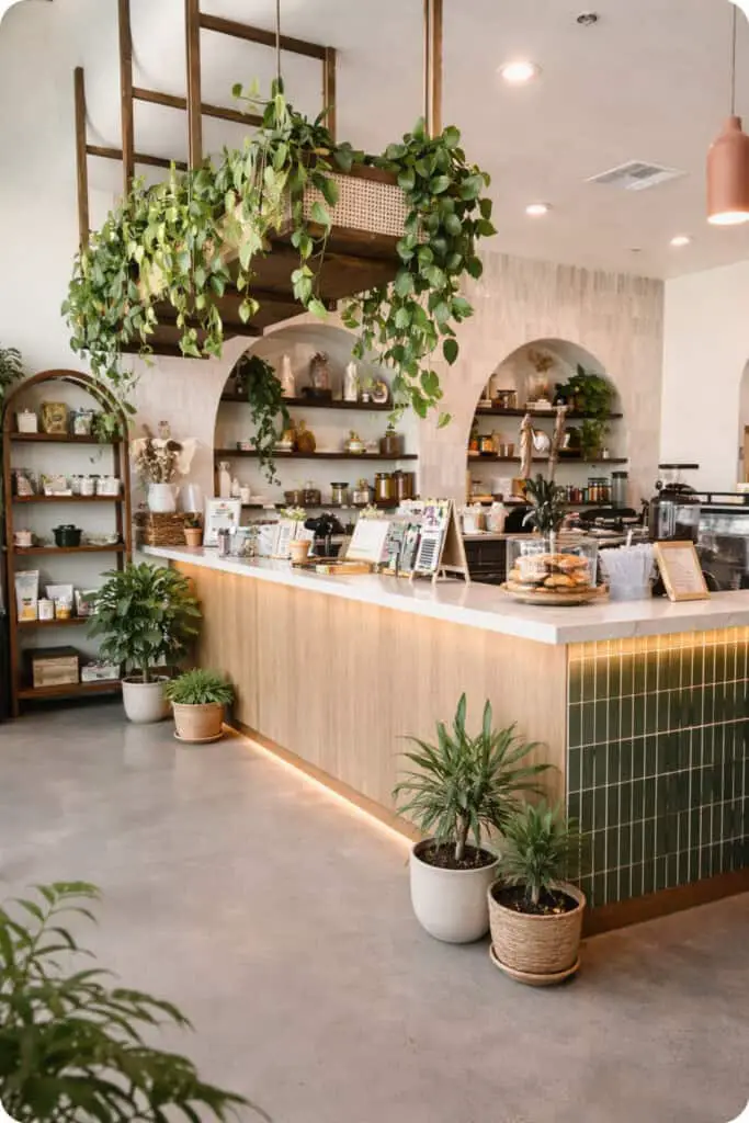 In minimalist cozy cafe interior design, the counter blends into the architecture rather than acting as a separate statement piece. Light wood cabinetry, matte finishes, and soft under-counter lighting maintain calm.