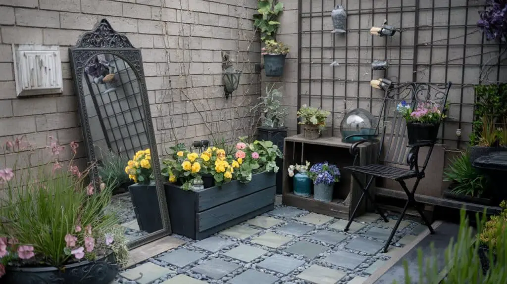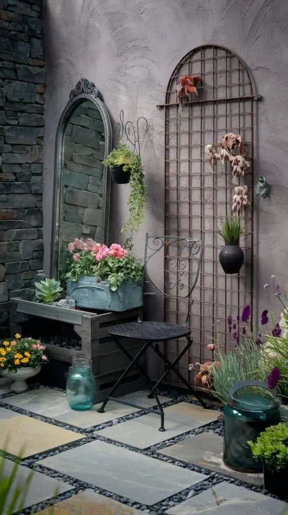 And don’t forget vertical space. A renter-friendly trellis in a pot gives you height without drilling into walls. You can zip-tie a trellis to a railing, or lean it against a fence. This is one of the simplest gothic garden ideas for balconies because it instantly adds that layered, greenhouse-like depth.