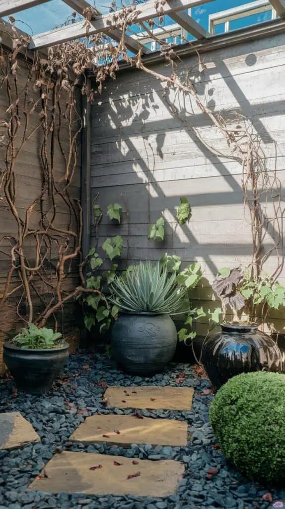 Choose two neutrals and one accent. For gothic garden ideas, a simple combo is matte black + stone gray with one accent like deep burgundy, antique brass, or smoky violet. This keeps your creepy garden vibe elegant, not chaotic.