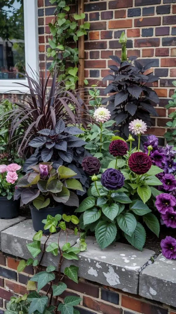 You don’t need rare plants to get the look. The best gothic plants are the ones with dark foliage, velvety texture, or strong structure—plants that look “designed” even on ordinary days.