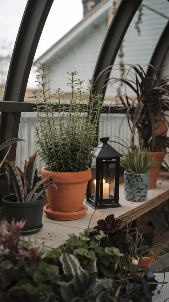 If you’re not sure about plant safety, keep the most questionable plants out of reach and lean on safer classics like rosemary, basil, many grasses, and non-toxic houseplants for your indoor gothic greenhouse shelf. The vibe comes from the palette, shapes, and lighting more than any single “rare” plant.