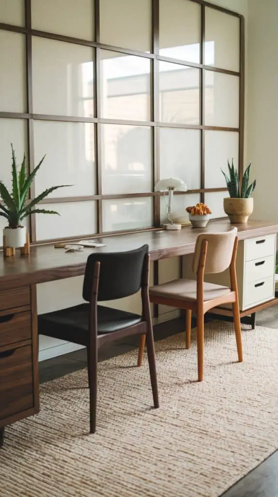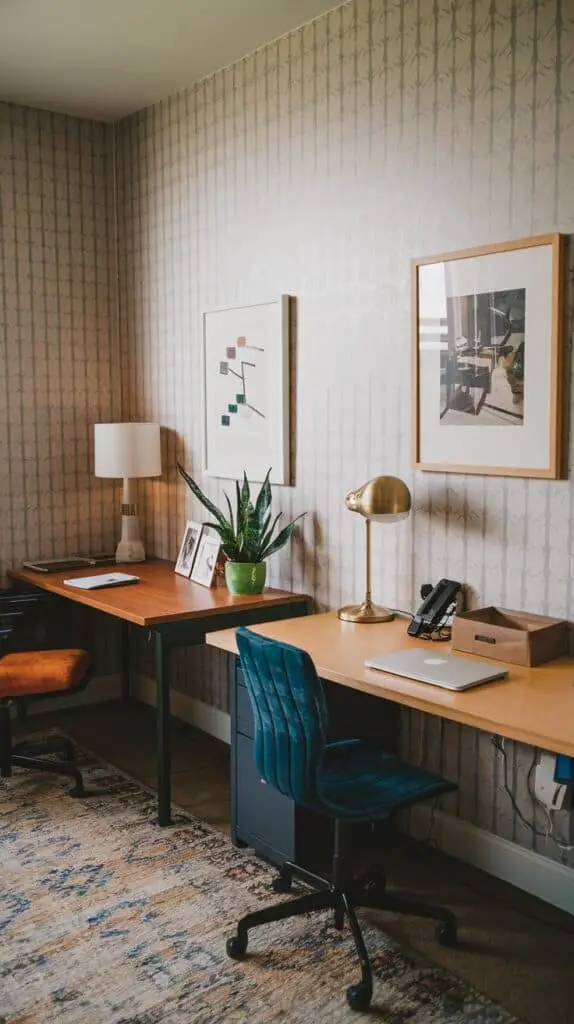 Sharing a space doesn’t mean it has to look identical. You can keep the overall style consistent—matching chairs, similar desk finishes, a rug to tie it together—while still adding your own touches.