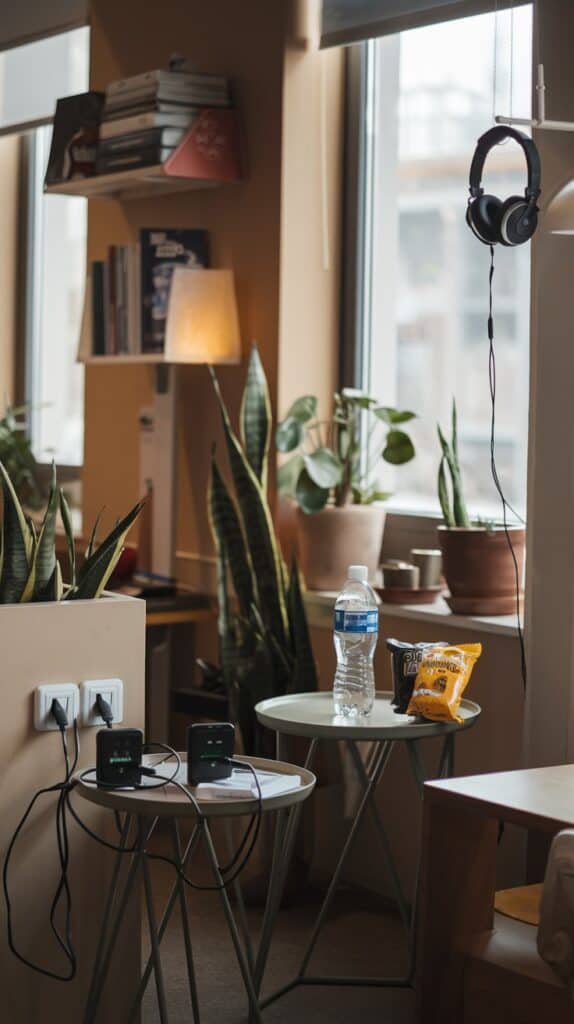 - Add a small side table or shelf for drinks and snacks.