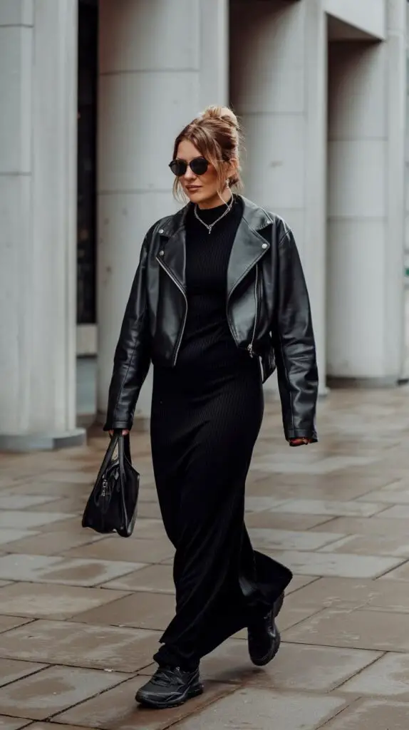2. The Street Style Spin: Leather Jacket & Maxi Dress