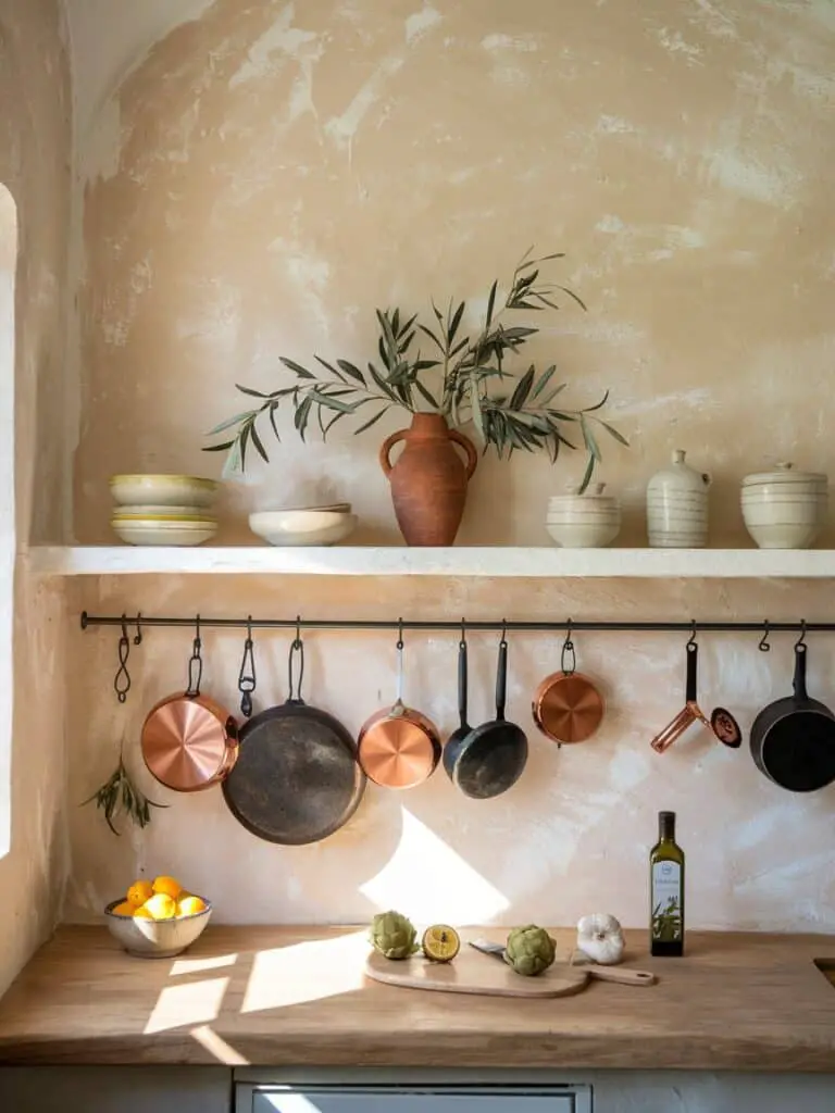 Mediterranean kitchens feel functional and warm—not overly styled, but thoughtfully arranged. Even in a rental, you can get that look by editing what’s visible.