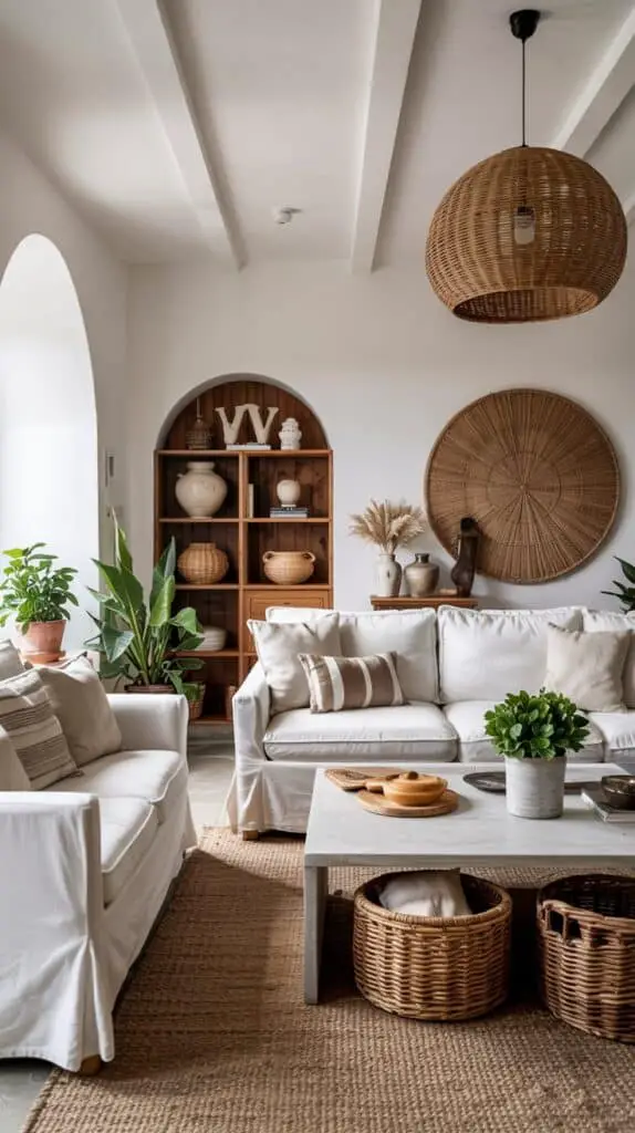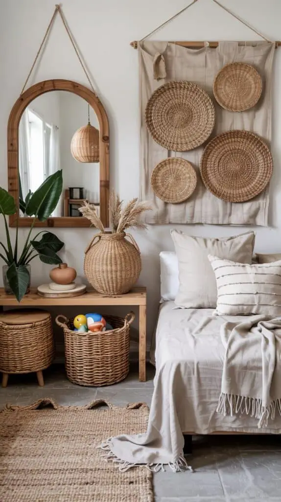 If you’re trying to stay visually intentional, set a simple rule: every surface doesn’t need decor. Let one or two pieces carry the texture, and keep the rest functional. A woven basket that hides toys counts as both style and storage—very Mediterranean, very real-life.