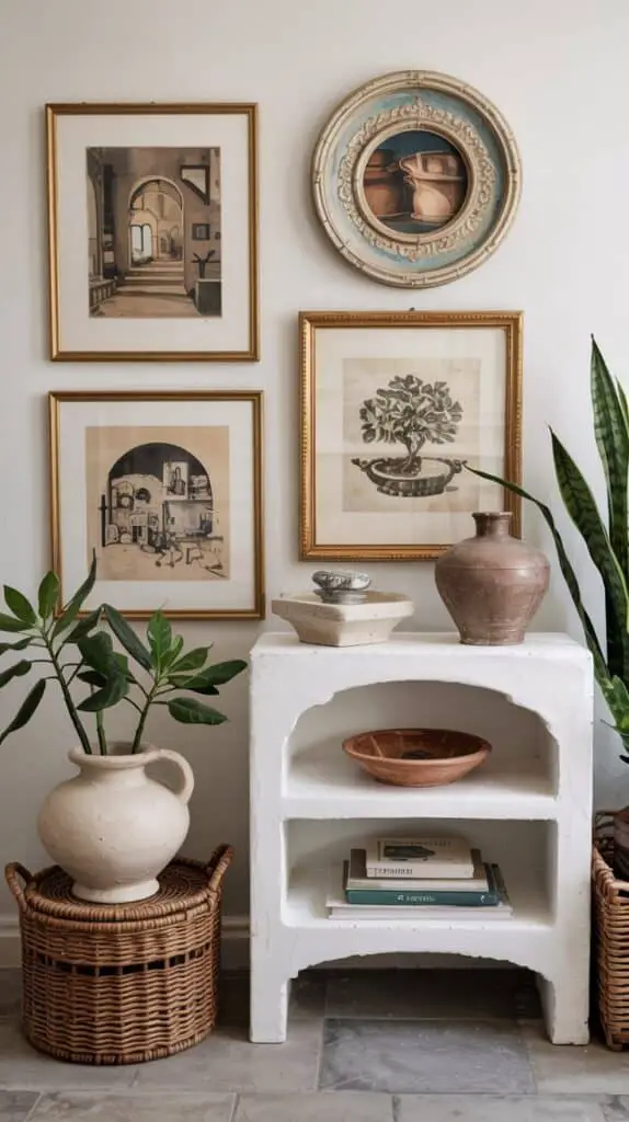 You don’t need expensive antiques to add depth. Mediterranean homes often feel soulful because they mix old and new, smooth and imperfect.