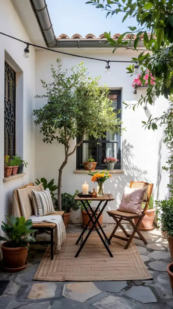 This is the renter-friendly version of Spanish Mediterranean Homes courtyard energy: a simple, sunlit yard feeling—without needing an actual yard.